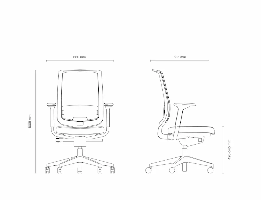 Nos sièges de travail sont conformes à la norme EN 1335-1:2020. La hauteur d'assise est mesurée à l'aide d'un appareil de mesure, qui détermine la hauteur en fonction de l'angle d'assise. La hauteur d'assise est mesurée en différents points de le siège. Pour cette raison, les mesures prises chez vous peuvent différer des dimensions officielles.